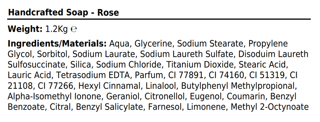 Soap slices are wrapped in waxed paper with an ingredients label and weigh approximately 100g per slice.