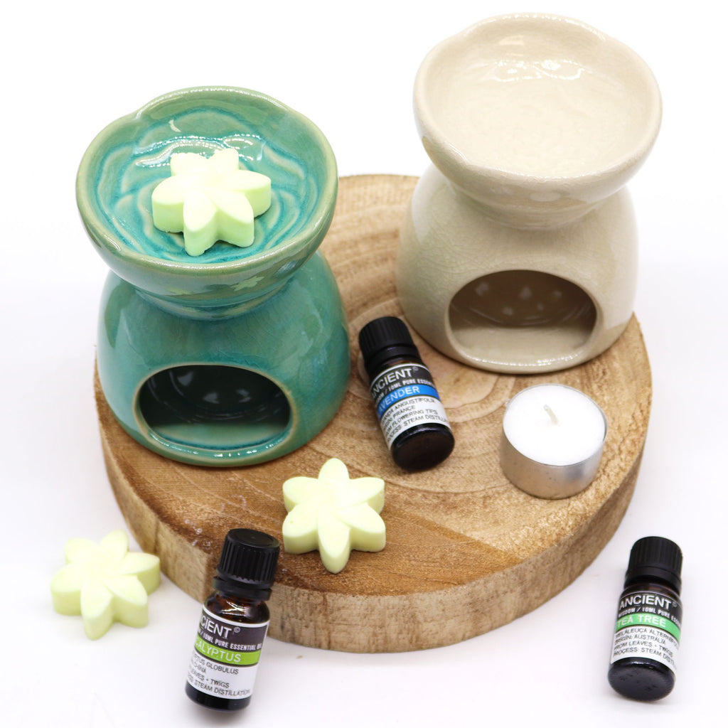 Place some water in the top bowl, light the candle beneath (tea light) and then tip a few drops of your chosen Fragrance Oil onto the water. Then as the water heats, the fragrance of the oils is released gently into the room.